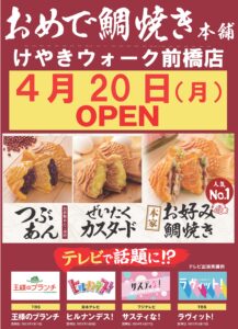 この度、弊社7ブランド目の新業態「おめで鯛焼き本舗」をけやきウォーク前橋様へ出店することになりました。